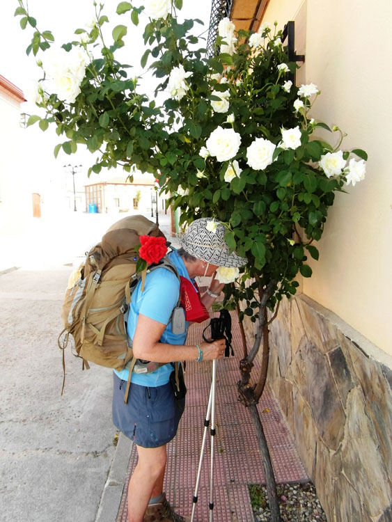 Ik had me net onder een boom geïnstalleerd toen de bus naar Arévalo langs kwam en ik Cath zag zwaaien. Toeval?? Het moest zo zijn.