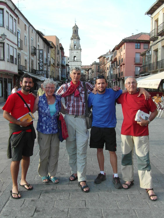 Het laatste stuk liep ik met Paul samen, die ik een stukje voor Toro achterop liep. Nadat we de Duero waren overgestoken, net vóór Toro, hadden we twee mogelijkheden. De spoorweg overklauteren en daarna steil omhoog langs de rotsen klimmen, of een paar km omlopen en dan via een weg het plaatsje binnen komen. We kozen voor de eerste optie. Het was leuk, maar ik voelde mijn knieën wel toen ik boven was.