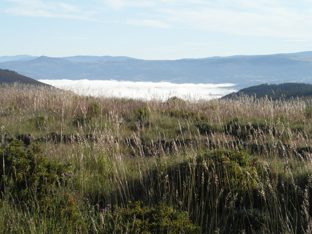 Bij opstaan was het weinig bewolkt en helder. 't Beloofde dus een weer een fraaie dag te worden. Tussen Gudiña en Campovecerros geen horeca gelegenheid, dus bocadillo meegenomen van de ontbijtbar. Tijdig op weg. Eerst Lucien nog op het goede spoor gezet. Het is me een wonder dat hij al zo ver in de richting van Santiago is gekomen. Hij loopt wel erg veel kms (om).