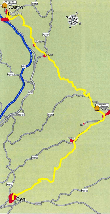 Weer via Oseira. Ik was er ongeveer 10.15 uur. Nadat Cath ook was aangekomen (11 uur) en de verschillende rondleidingen had gehad, vertrokken we ca 12.45 uur. Was toch wel een lange wachttijd in een dorp van helemaal niets met alleen maar een koud/ kil klooster, waar je eigenlijk niet wilt zijn.