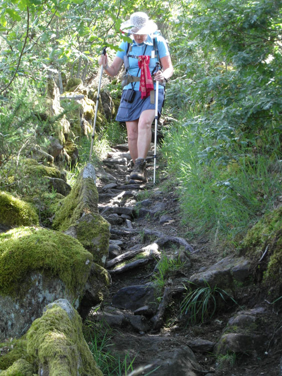Dan weer op pad. Het gehucht uit en steil omhoog. Een schitterende tocht. Wel pittig klimmen, met veel steenbeken en rotspaden. Waar we vorig jaar verkeerd liepen, ging het nu in één keer goed. Was op zich niet zo moeilijk.