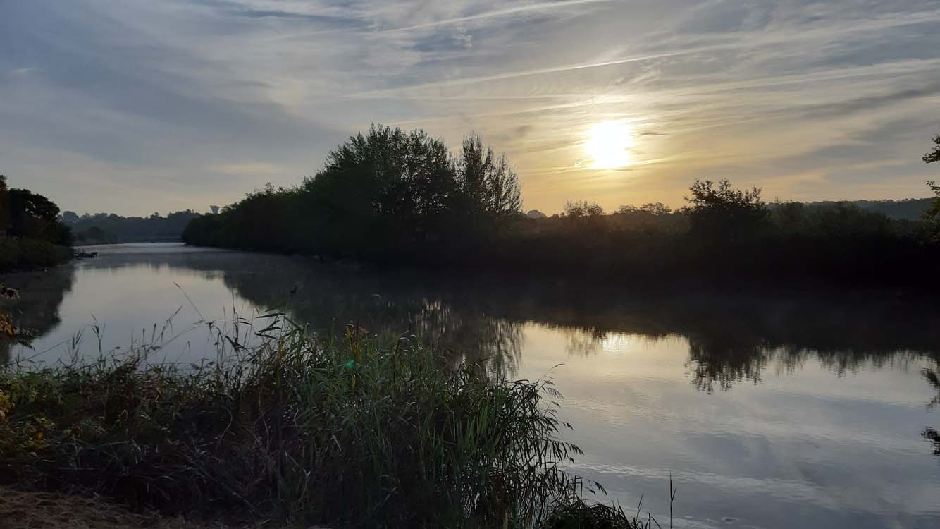 Ik kon vanochtend vroeg op weg. Véronique had om 08.00 uur een afspraak en ik kon om 07.00 uur ontbijten. Komt mooi uit. Om 07.30 op stap. Het eerste deel naar Ustaritz, langs de Nive, gaat uitstekend. Goed aangegeven, maar je kon ook niet veel anders langs de rivier. Mooie omgeving. Wel een asfalt (fiets)pad. Veel joggers en fietsers.