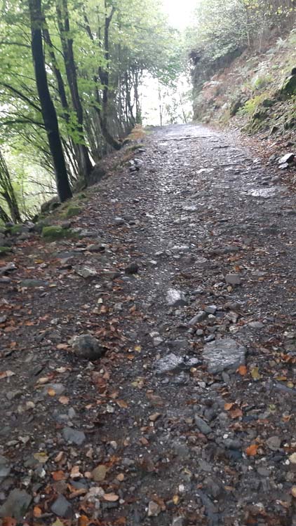 Op enig moment bij een verlaten boerderij was het uit met de pret (voor zover je daarvan kon spreken). Een onregelmatig rotspad, dat glibberig omhoog voerde, lag voor.