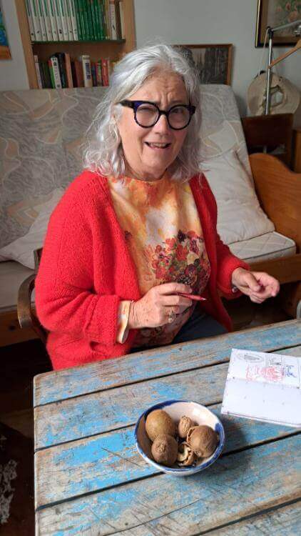 Cath besloot haar wandeling via de weg te vervolgen en ik ging verder via het pad de bossen weer in. Het was inmiddels weer droog en het was sterk dalen tot aan Orío. Ik was er net en Cath kwam ook al aanlopen.