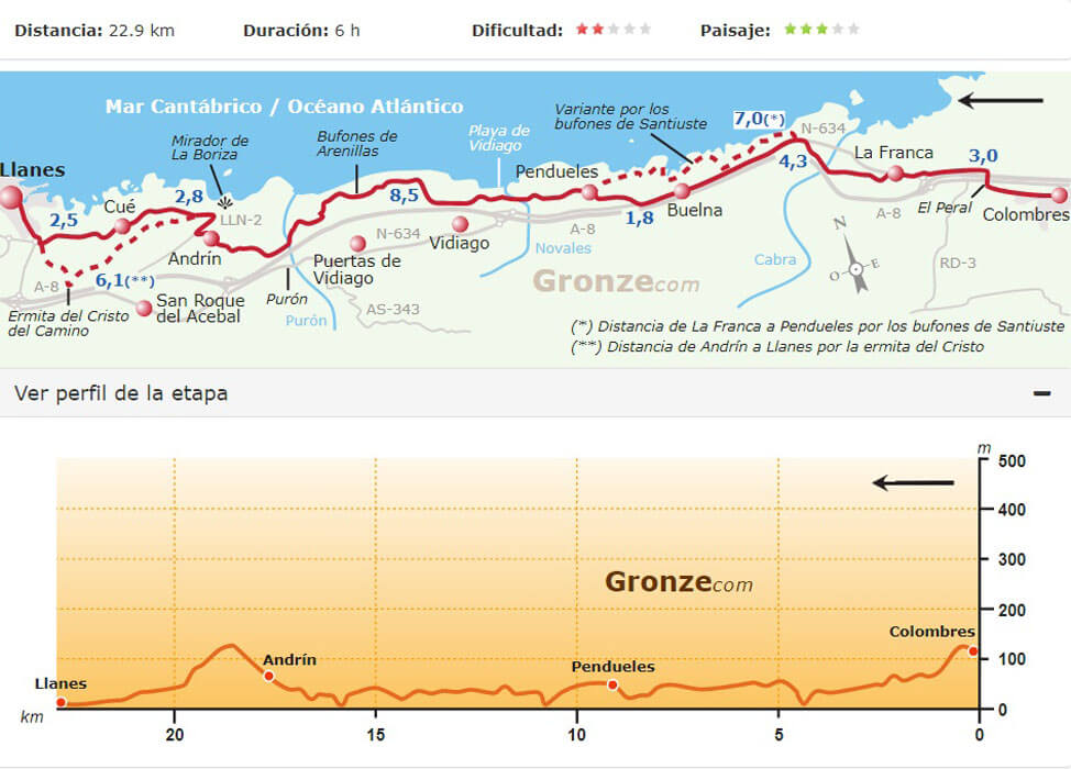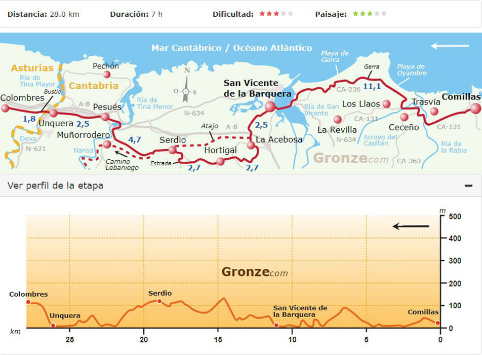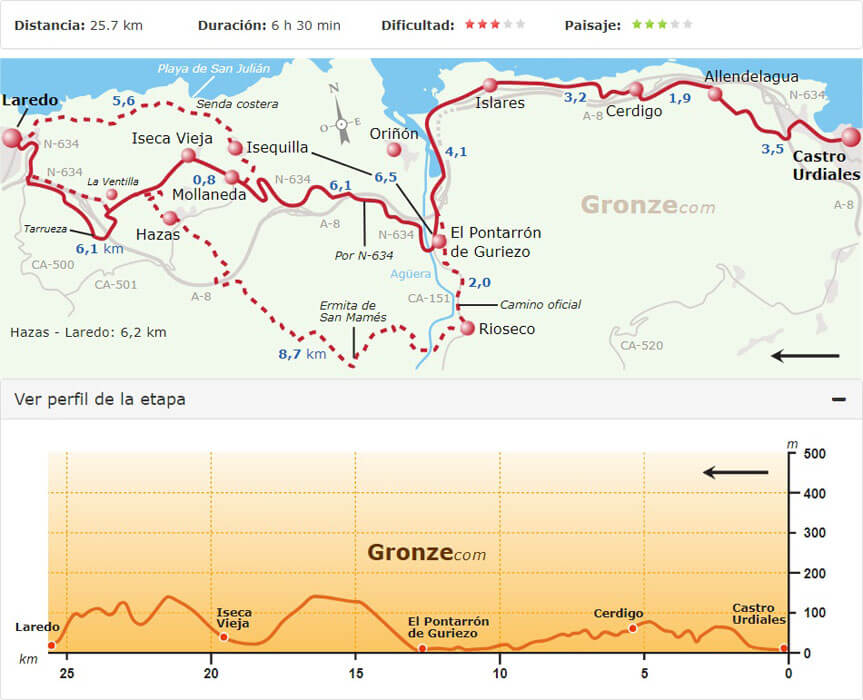 Truus loopt bij voorkeur niet meer dan 20 km per dag. Op de Camino del Norte zijn de etappes gemiddeld wat langer, zodat het bepalen van de route voornamelijk afhing van de mogelijkheden voor overnachting.